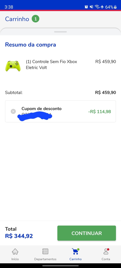 5° - Procurar por "Controle Sem Fio" , vai aparecer o Xbox Pulse Red por R$ 418,41 , selecione e escolha a forma de pagamento. (Não da pra aplicar cupom no app banQi, a vantagem de fazer pelo aplicativo banQi é que você consegue pagar e dividir sem juros com cartão de crédito da sua escolha, além de sair mais barato)