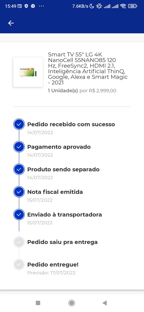 Olá! Meu pedido foi aprovado ontem mesmo às 19:30hs, meu cartão aprovou o pagamento que já até descontou do meu limite, mas no aplicativo do BanQi só consta "Pedido recebido com sucesso", nem pulou para a etapa do "Pagamento aprovado". Já fiz minha reclamação no ReclameAqui e estou aguardando. Alguém mais com o mesmo problema?