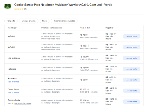 Menor preço segundo o Google Shopping