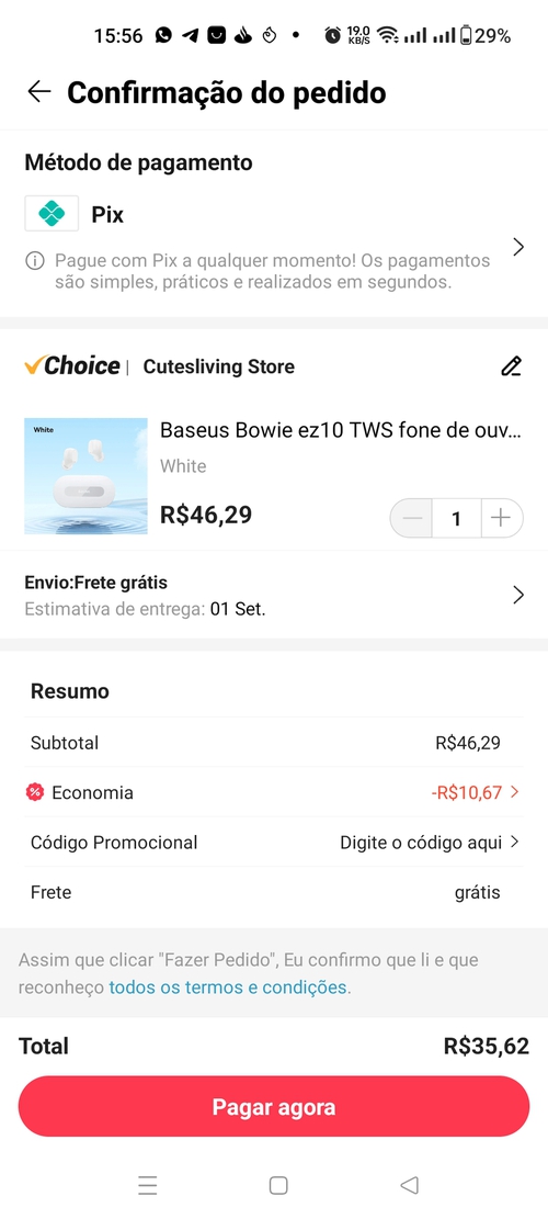 No dia 22/07, comprei este fone de ouvido por R$ 32,85 e, infelizmente, fui taxado em R$ 33,75. O produto chegou ao Brasil no dia 26/07 e, para minha surpresa, no dia 1º de agosto, foi adicionada uma taxa adicional.