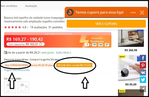 O CUPOM DO ALIEXPRESS VAI DAR 5,96 DE DESCONTO