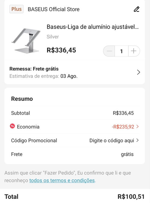 Comprei numa promoção anterior e é um suporte praticamente perfeito, nesse valor acho difícil encontrar algo desse nível. Extremamente robusto e bonito. Uso com meu nitro 5 de 15". Há outro suporte da baseus mais barato, para quem quer usar utilizando o teclado do próprio notebook também é uma ótima pedida. Os ajustes de inclinação/altura são mais simples, mas a qualidade é absurda também .