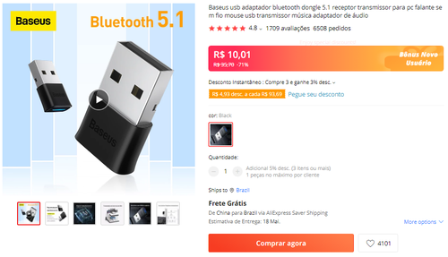 Baseus usb dongle adaptador bluetooth 5.1 [Novos Usuários]