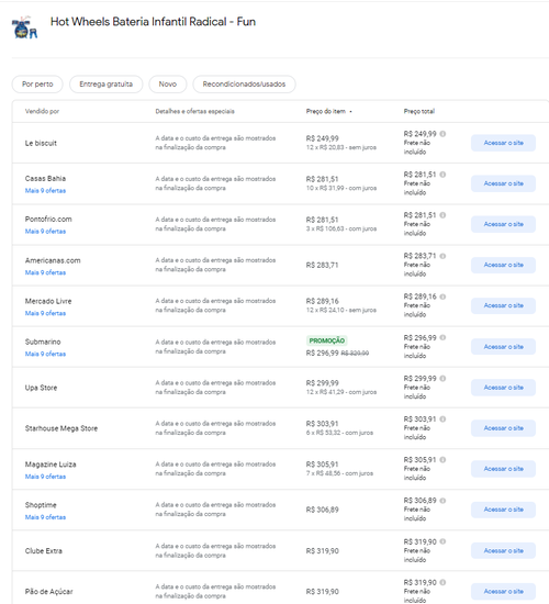 Menor preço segundo o Google Shopping
