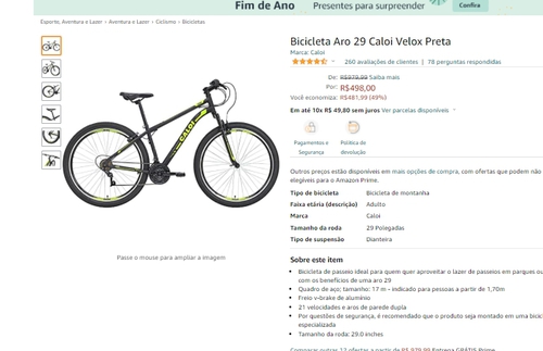Como conseguir a bike por R$ 498: 1 - Selecione o preço da bike; 2 - Clique com o botão direito do mouse sobre o preço selecionado; 3 - Seleciona a opção inspecionar; 4 - Vai abrir um menu lateral, nele terá uma parte com o texto R$ "R$979,99", basta clicar duas vezes sobre, apagar o texto e digitar "R$498,99". Espero ter ajudado. 😹😹😹😹😹
