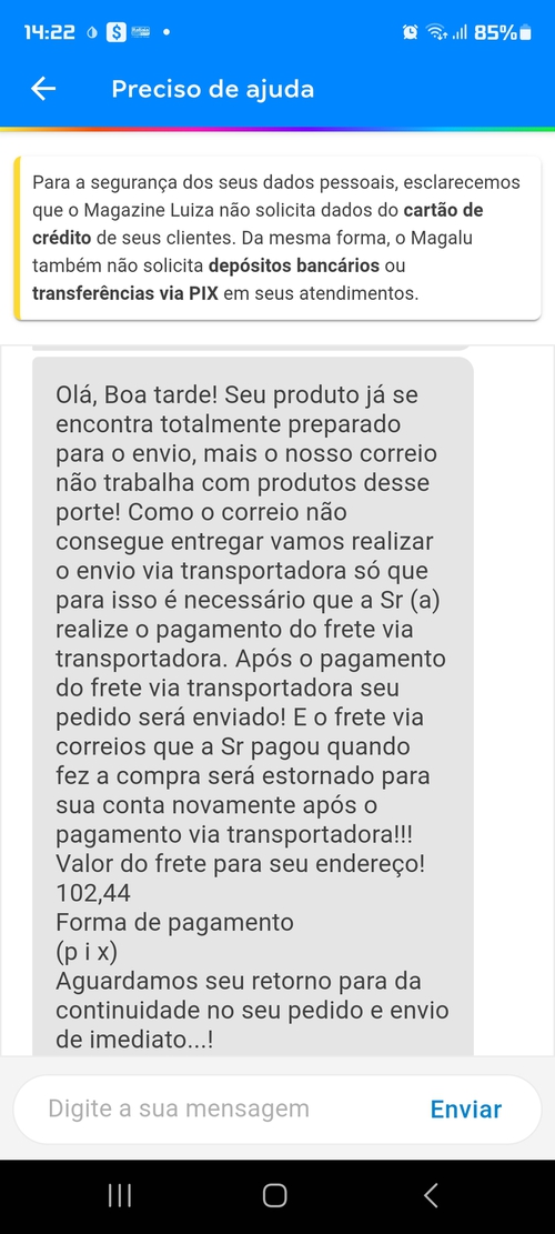 A fraude veio kkkkk. Loja pediu pagamento do frete por fora kkkkk