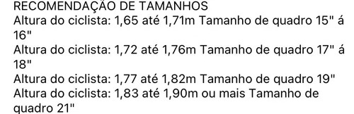 Minha Avaliação: Bike simples e de entrada! Não indicada para trilhas, porém andar em terreno leve de terra é possível tranquilamente, componentes simples e câmbios de boa qualidade simples.