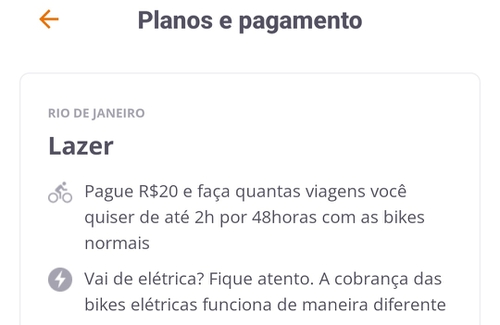 No plano Lazer 48h para utilização das bikes normais, fica de graça!!!
