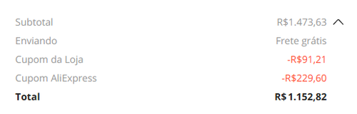 A loja possui cupons internos que podem ser combinados. Cupons de 30,90 reais, além do cash que voltará do valor pago.