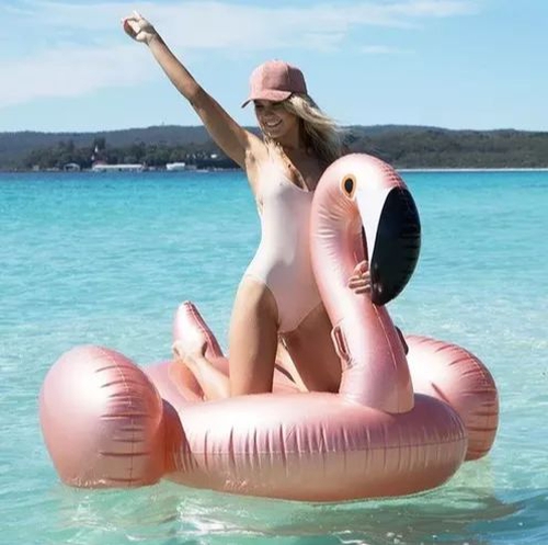 Boia Inflável Flamingo Rose Gold Luxo | R$299