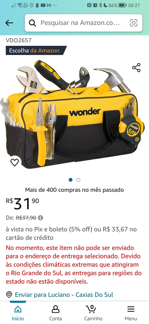 Tudo que é loja já está enviando para o RS e a porcaria da Amazon não, ja perdi diversas promos por conta disso.