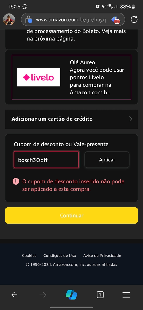 Eu tenho um vale compras que estou guardando a meses, a Amazon não distingue vale compras de cupom, só dá pra usar os dois... af