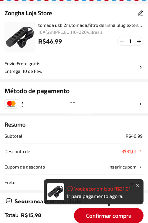 Coloquei no carrinho, voltei pra página inicial, cliquei no campo 'moedas', o produto apareceu, mas por 46 reais, eu nunca consigo esses descontos, ou minha conta foi premiada ou é tudo mentira.