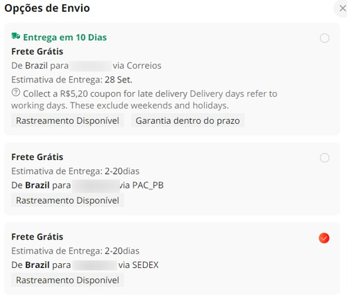TEM OPÇÃO SEDEX, ESCOLHA UMAS DAS OPÇÕES BR