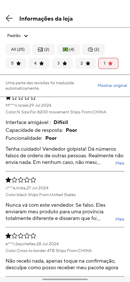1 - Veio por SP e foi barrado e devolvido. Pedi o reembolso, o vendedor ficou oferecendo valor baixo do valor original, por volta de 5 dolares a menos.