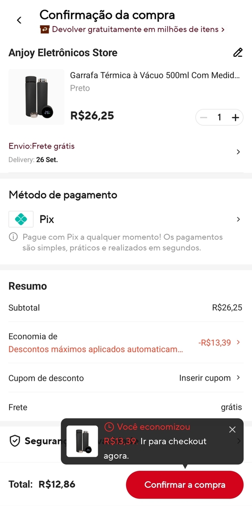 [Brasil/ Moedas R$12,86] Garrafa Térmica à Vácuo 500ml Com Medidor De Temperatura Digital Display