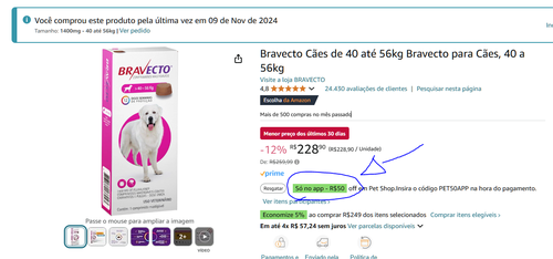 Na pagina do produto você deve aplicar o cupom de R$ 50,00 off para produtos pets