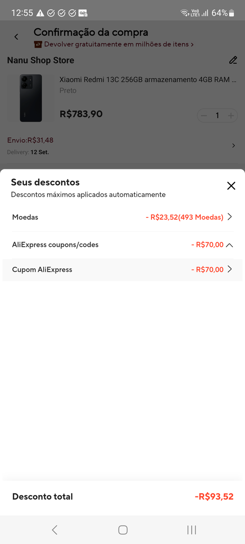 [BR,/MOEDAS] Xiaomi Redmi 13C 4GB/256GB Versão Global #Aliexpress 🇧🇷