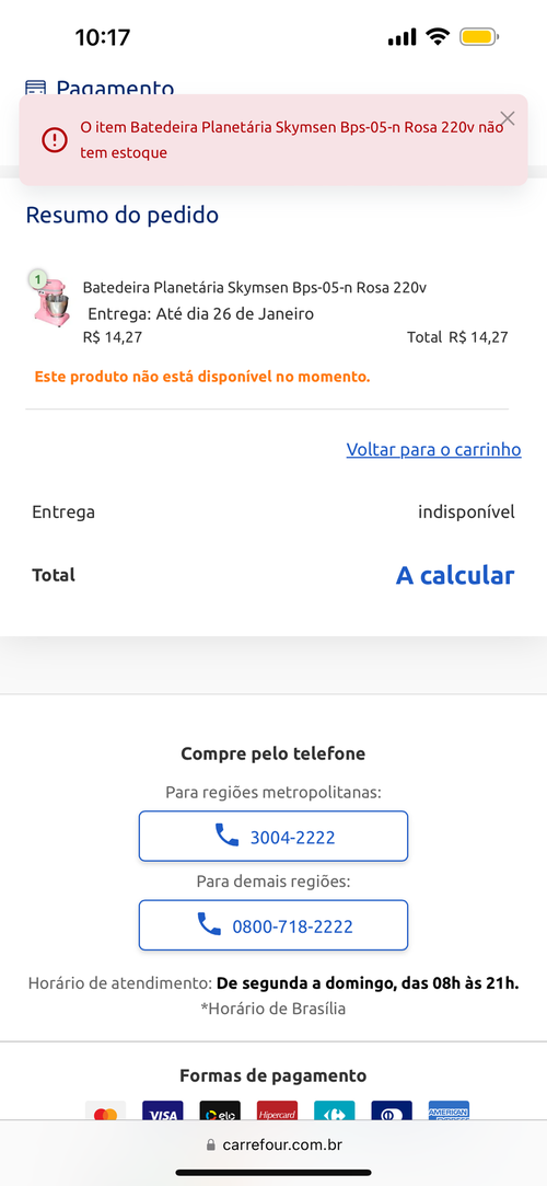 Deu produto indisponivel na hora de pagar :(