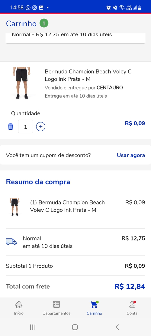 Mas pelo que vi aqui... Até uns 50 conto ainda vale, bermuda mais de 140 reais normalmente.31.50 de frete pro rio de janeiro. E o medo de cancelar e ficar sem o dinheiro do frete? 🤡