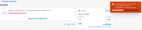 Item indisponível, quando coloca no carrinho ele diz que não tem disponível. E o frete era grátis ainda