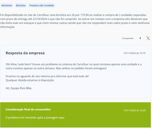 Achei uma reclamação que eles entregaram a bicicleta com este mesmo preço