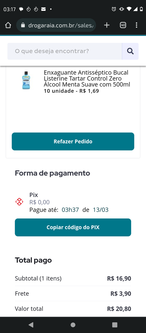 Vlw, vou pegar meus listerinewls agora, deu para comprar 5 e vai durar uns 5 meses