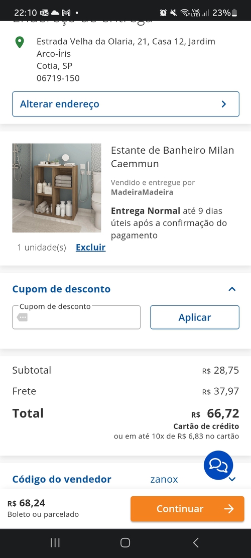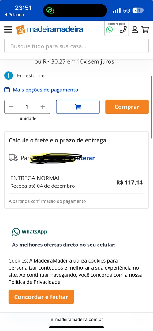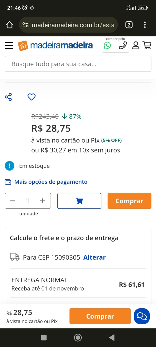O frete é o de menos, as últimas compras que tentei fazer na MadeiraMadeira, eles cancelaram uns dias depois. Parece que tá falindo...