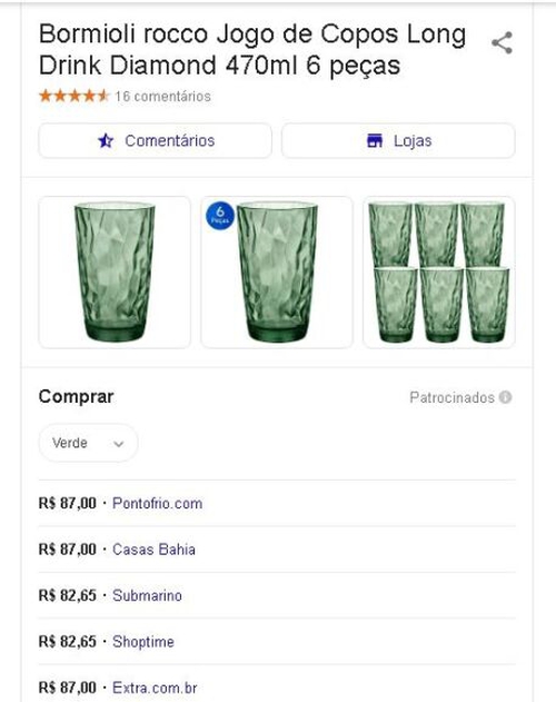 [Bug] Jogo de Copos Long Drink Diamond 470ml 6 peças - Bormioli Rocco - Verde | R$15
