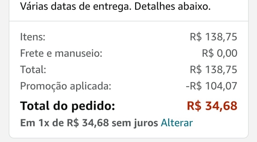 De R$111,27 ficou por R$37,08, peguei algumas coisas