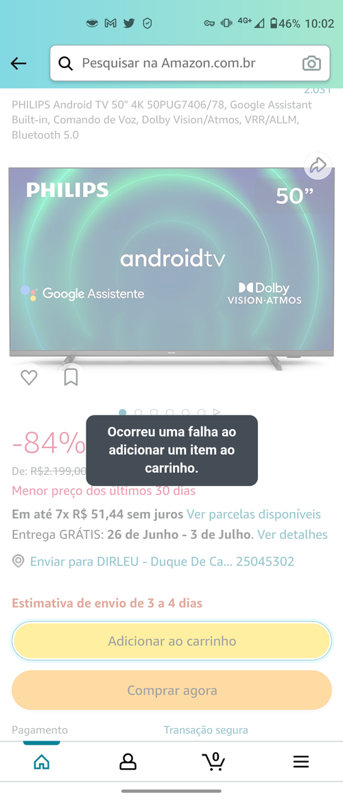 Naõ da pra adicionar ao carrinho