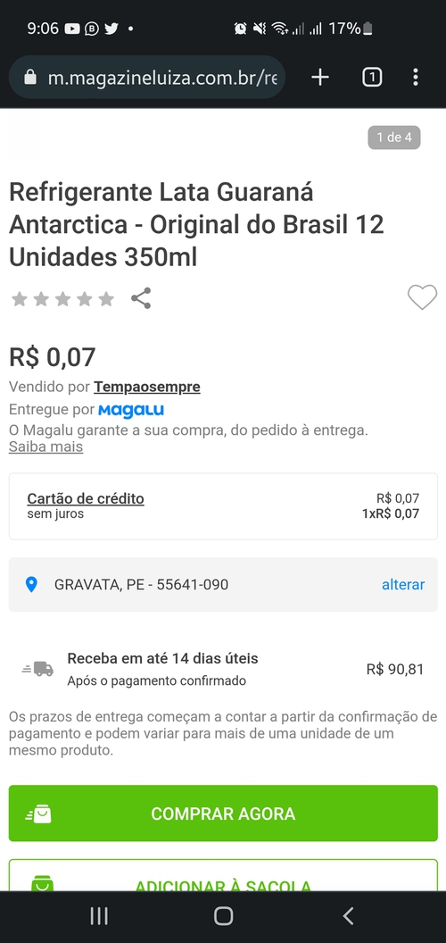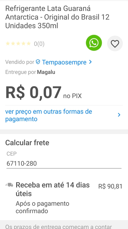 Na compra de um frete, receba 12 guaraná por R$0,07 kkkkkk 50 reais de frete e vai aumentando ao incluir mais no carrinho
