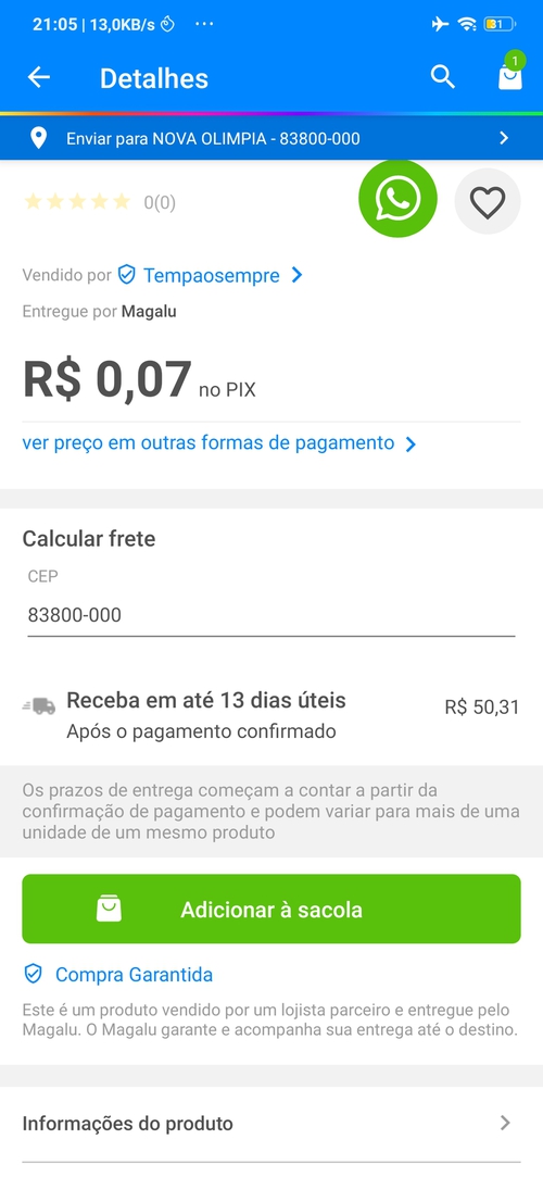 O que mais tem na Magalu são esses produtos abaixo do preço com fretes inflados... Marketplace galera, cuidado!