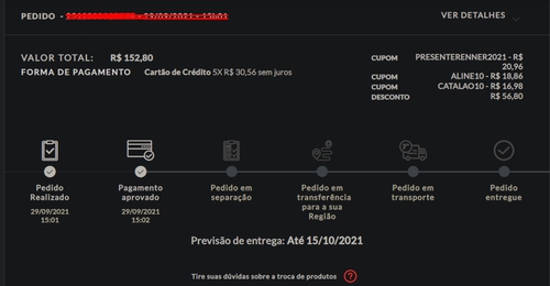Comprei em 4 contas diferentes, com 3 cupons e o desconto Mastercard: