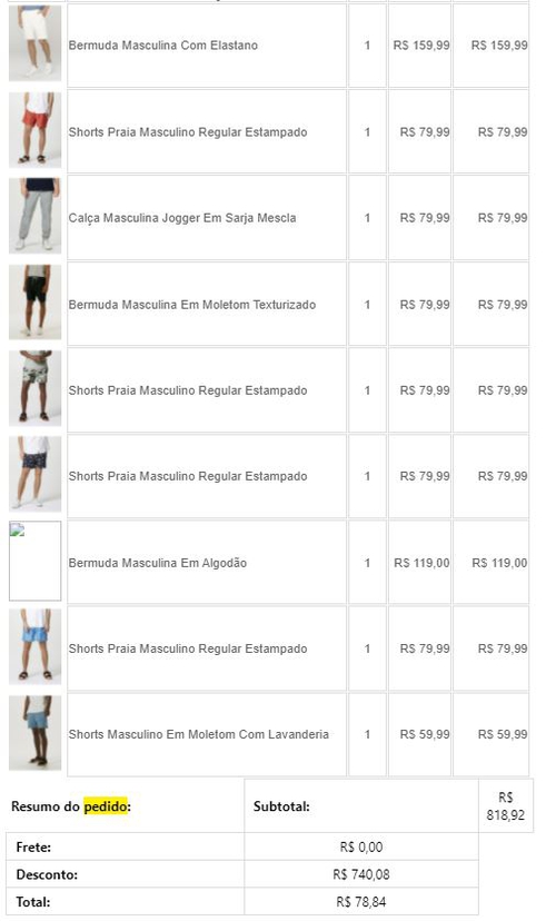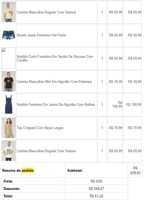 Não ficou bem com um valor baixo no final mas valeu a pena pagar 200 em 4 camisetas, 1 calça e 1 sapatênis