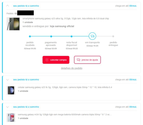 Processar as 2 sem dó, tanto Samsung como Americanas.