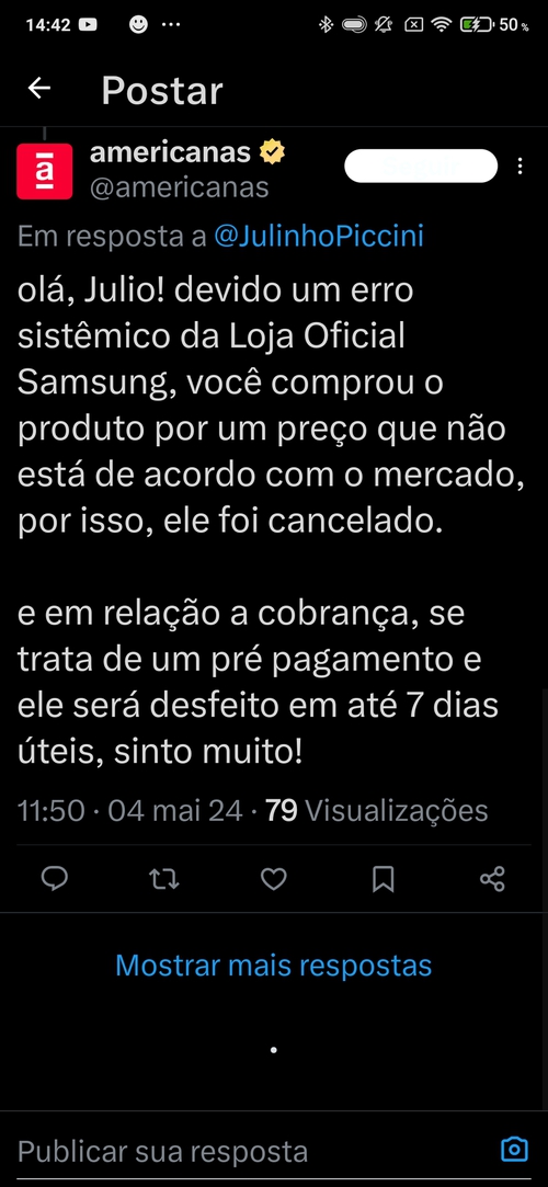 Liguei na Samsung e disseram que meu pedido foi cancelado... mas ainda não refletiu no site da americanas.