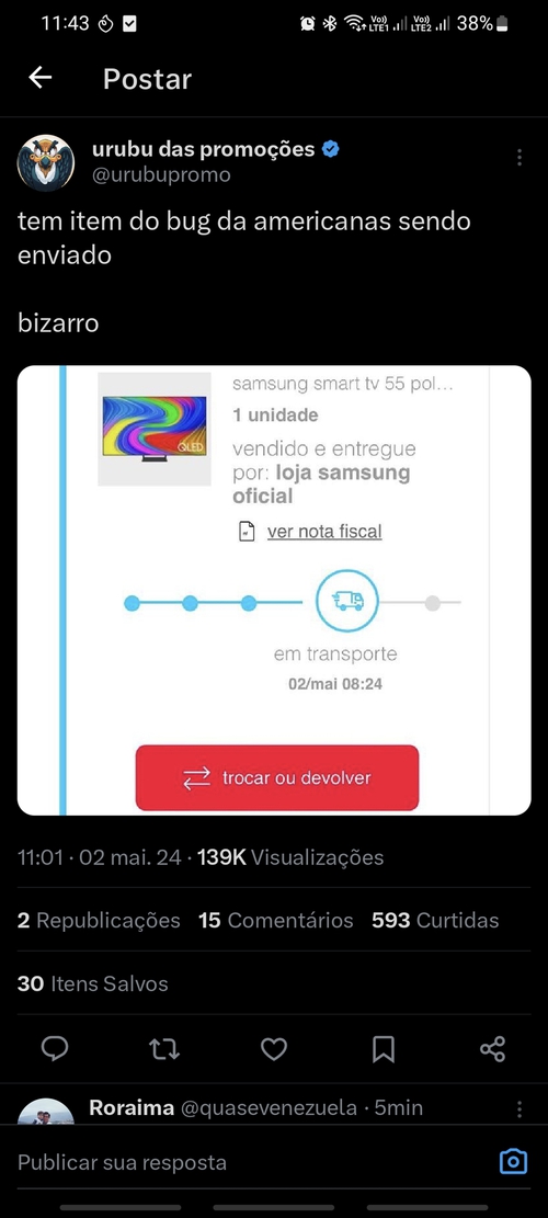 Se não vão enviar os produtos, a própria americanas/submarino deveria mandar um e-mail pra todos informando o ocorrido, mas, caso a Samsung n envie, vão é segurar o dinheiro pra apurar o lucro 🤑🤭