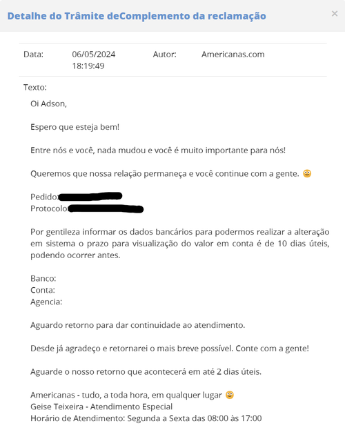 Me responderam no Consumidor Gov, pediram a conta bancária e vão alterar de Vale-trocas para depósito.