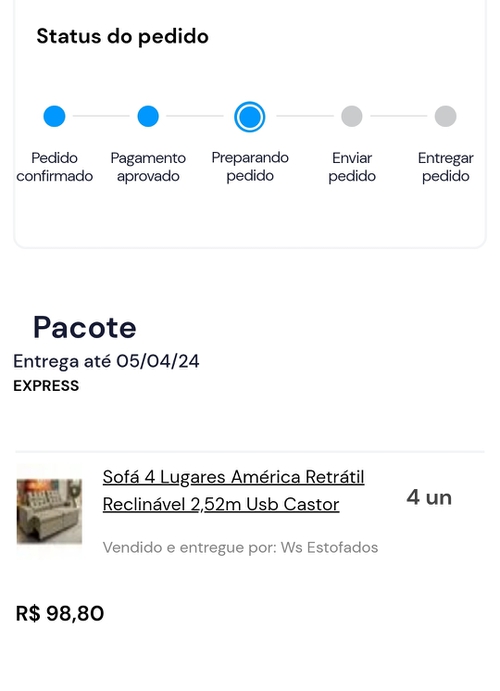 Aqui tá preparando o pedido depois de confirmado, vamos ver, ainda não estornaram o Pix