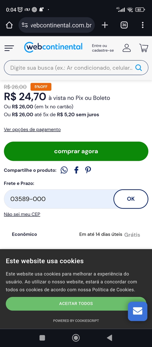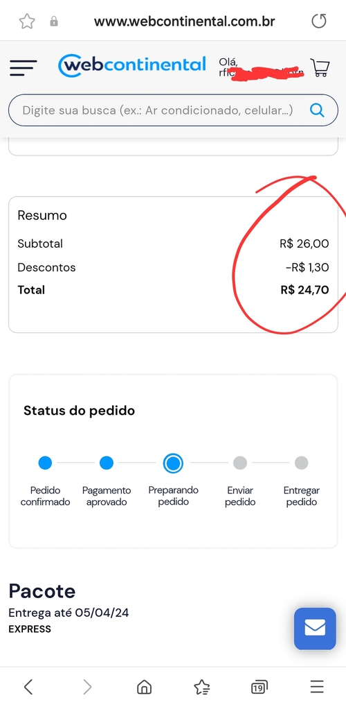 Frete grátis aqui mas perdi o desconto de R$1,30 🥺🥺🥺