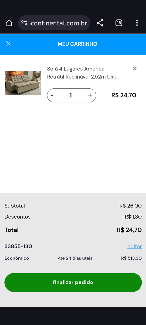 Preço do sofá: R$24