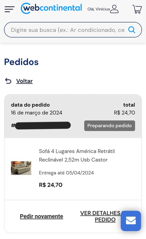 Pelo visto o bug não atingiu só o preço do sofá