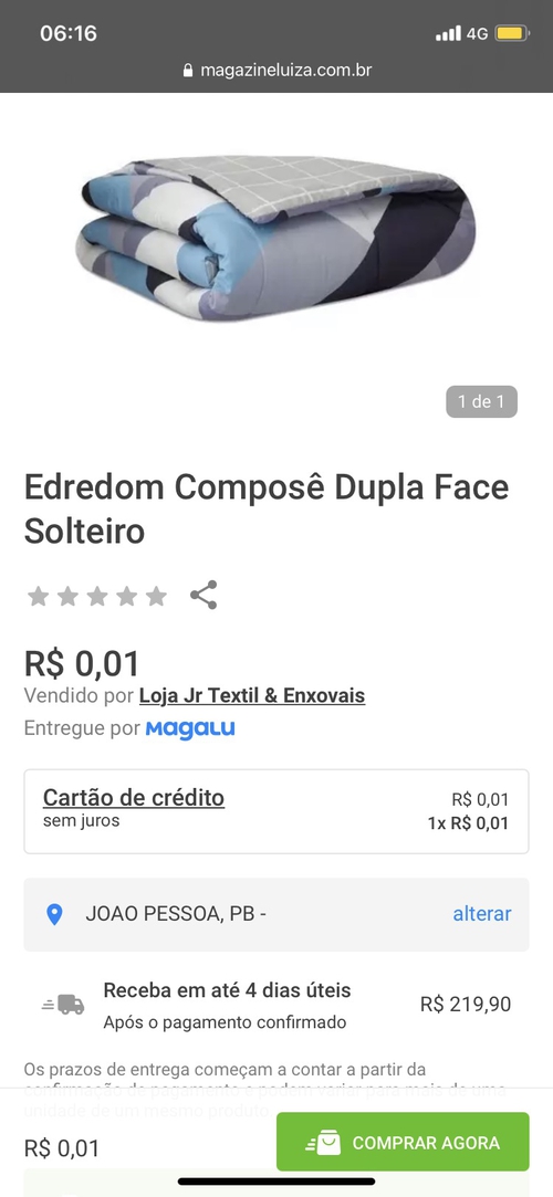 Nada de bug, 180 de frete, é o famoso compre um frete e ganhe um edredom