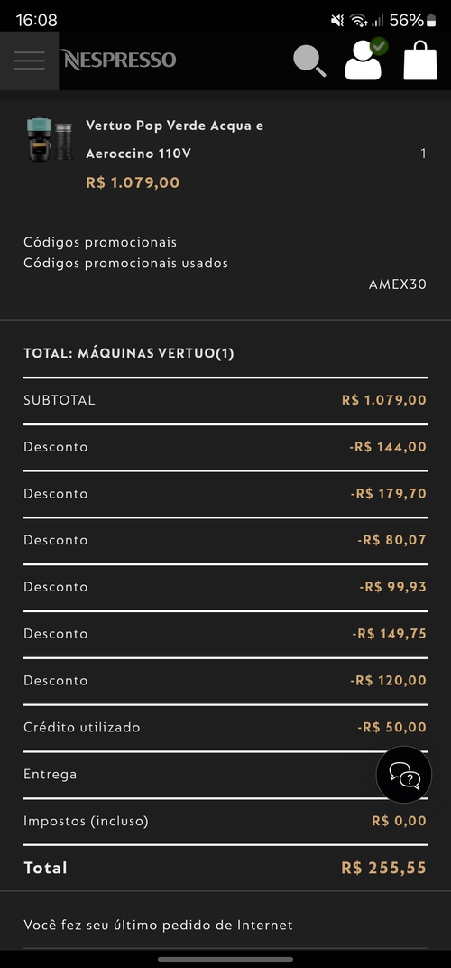 Pessoal que não viu que o aeroccino vem junto é muito perdedor de promo... Estão dando a máquina... O colega aí que conseguiu 50 reais deve ter pego de outra promo, pq aqui não entrou nada agora... O crédito aparece depois de faturar a máquina...