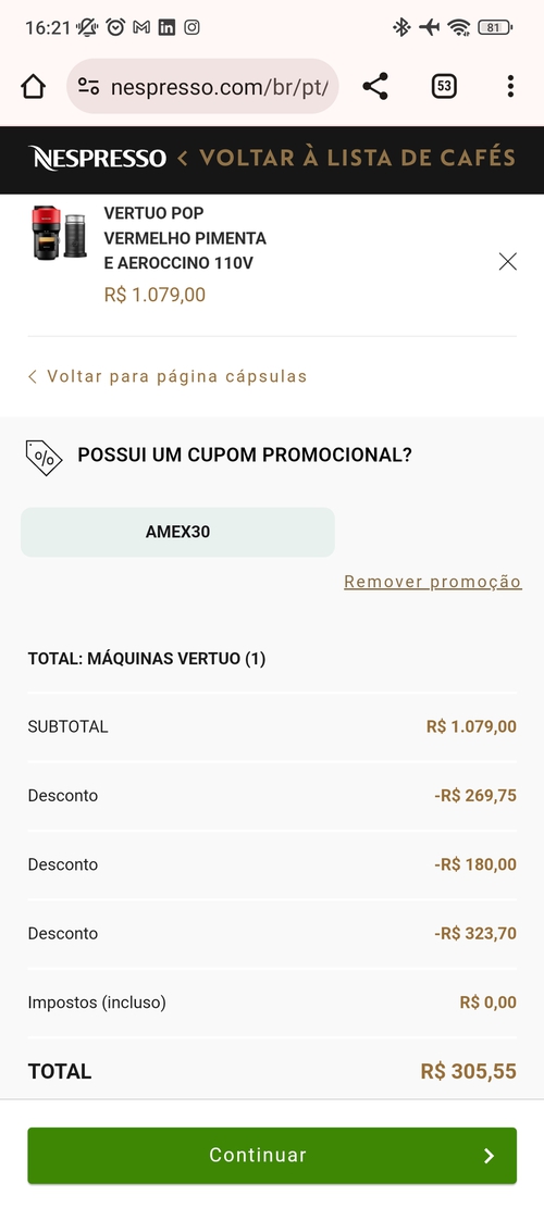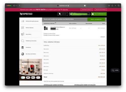 Uhuuuuu, Comprei! Ainda ganhei 50 reais em cápsulas! Obrigado!!!