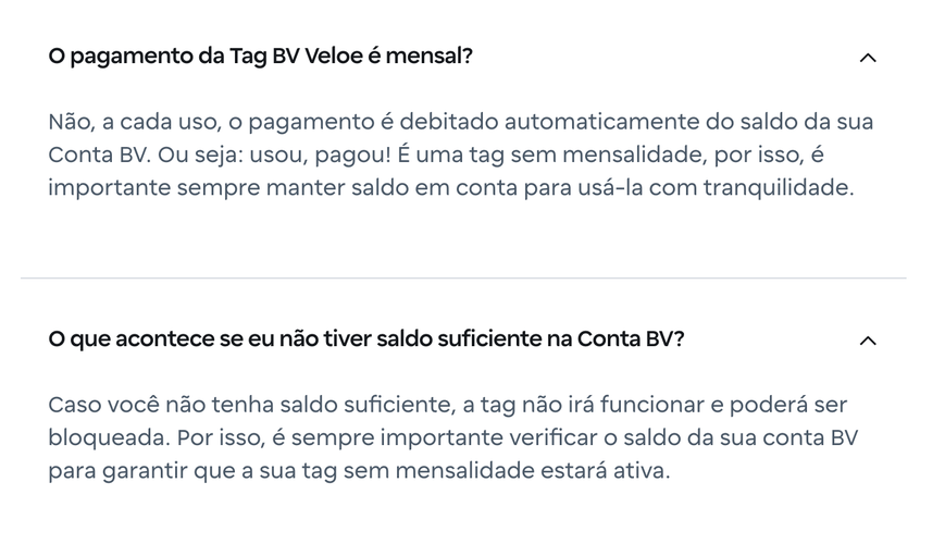 Utilize a Tag BV Veloe em pedágios e Free Flows