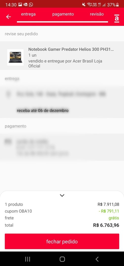 [C. Americanas + Cupom + AME] Notebook Gamer Predator Helios 300 16GB