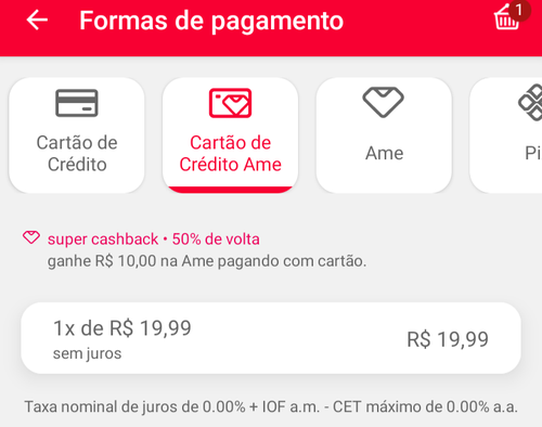 Pro valor dar certo tem q finalizar a compra NO APP AME e com o CARTÃO DE CRÉDITO AME dentro do APP!