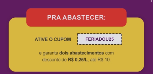 Funcionou aqui, são 2 cupons de R$ 0,25 por litro até R$ 10 reais no total por cupom.